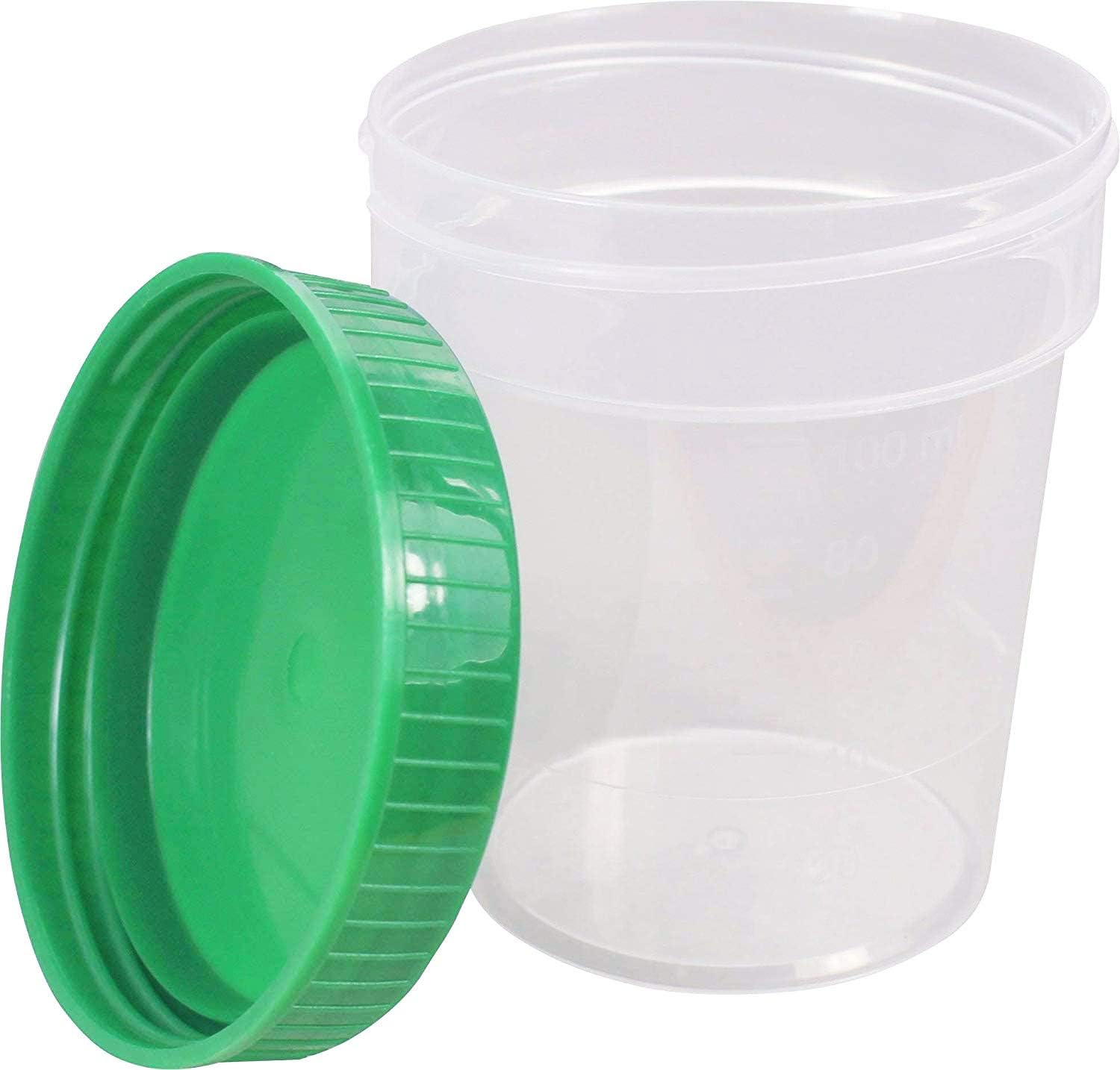 - Urinsammelbecher in milchig mit grünem Schraubdeckel