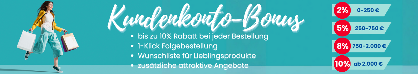 Ab einem Nettowarenwert von 150,00 EUR liefern wir innerhalb Deutschlands versandkostenfrei. Nutzen Sie diese großartige Gelegenheit, um bequem und schnell einzukaufen und dabei die Versandgebühren zu sparen.
