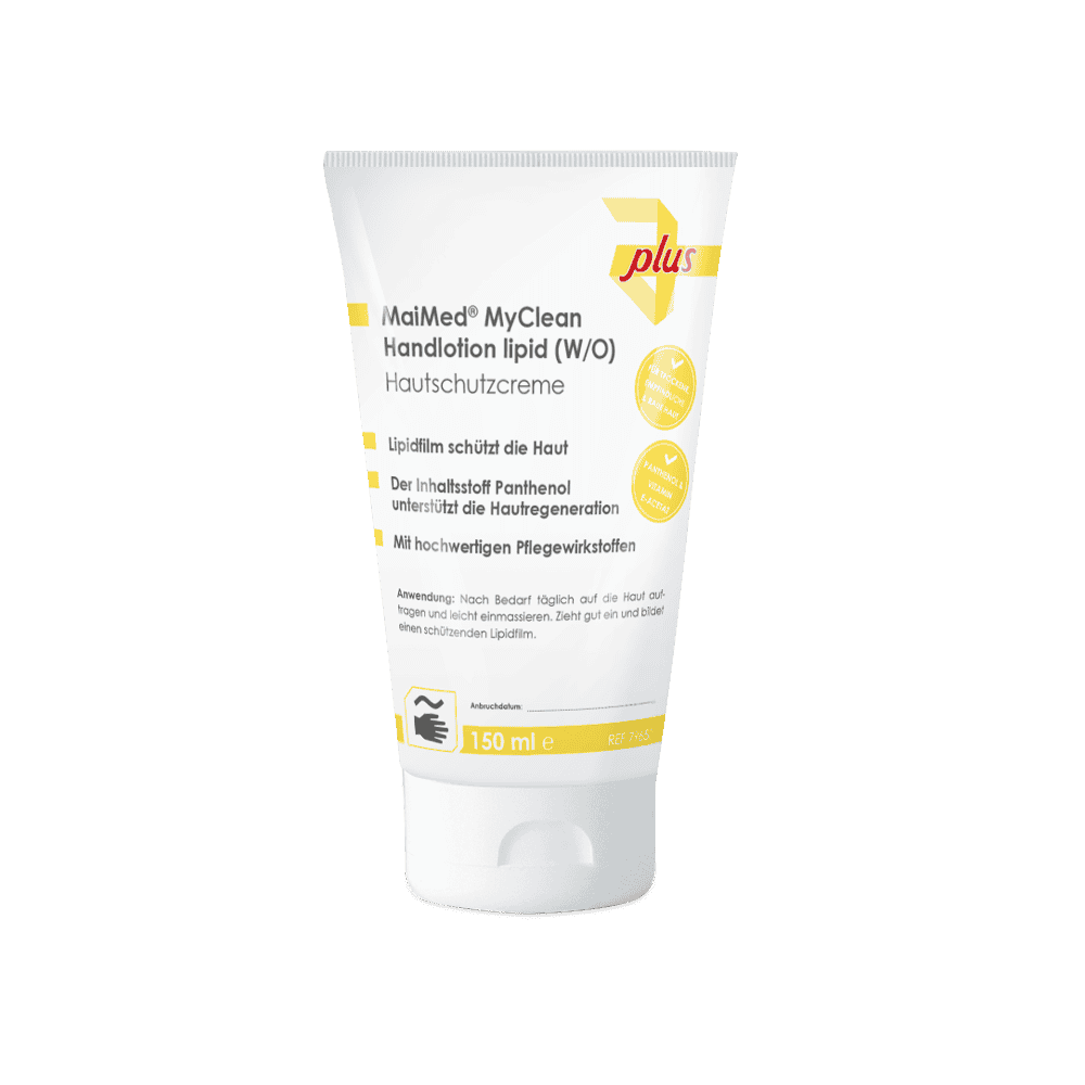 MaiMed® MyClean Handlotion lipid (W/O) ist besonders geeignet für trockene, raue und empfindliche Haut. Hautreizungen und Irritationen können wirksam verhindert werden.
