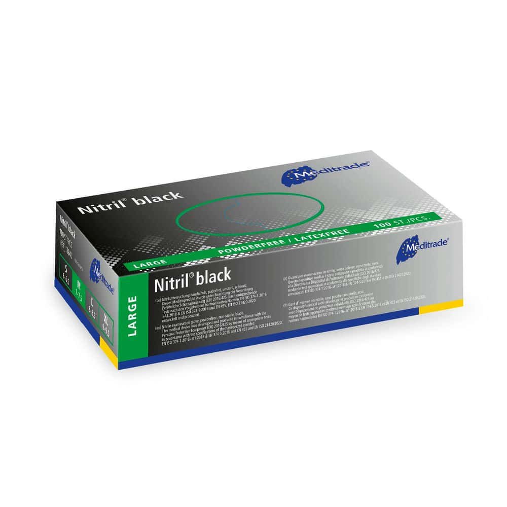 Der Meditrade Nitril black ist ein schwarzer Nitril-Untersuchungs- und Schutzhandschuh. Er ist geeignet für den Umgang mit Reinigungsmitteln und Desinfektion und für weitere Anwendungen im Labor, in der Pharmaindustrie, für die professionelle Reinigung, im Catering und für den Umgang mit Lebensmitteln im Allgemeinen.