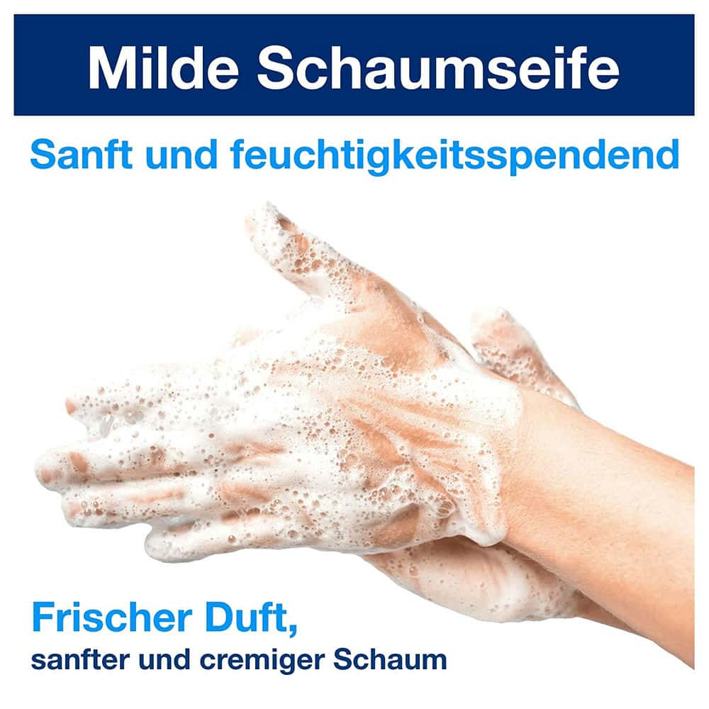 Bieten Sie hochwertige Pflege für normale und trockene Haut beim täglichen Händewaschen. Die Tork Mild-Duftende Schaumseife zeichnet sich aus durch ihren frischen Duft und ihre feuchtigkeitsspendenden und regenerierenden Inhaltsstoffe. Sie bildet einen weichen, cremigen Schaum für ein sanftes Händewaschen. Geeignet für die Tork Spender für Seifen- und Händedesinfektionsmittel, die zertifiziert benutzerfreundlich sind und allen Nutzern eine gute Händehygiene ermöglichen.