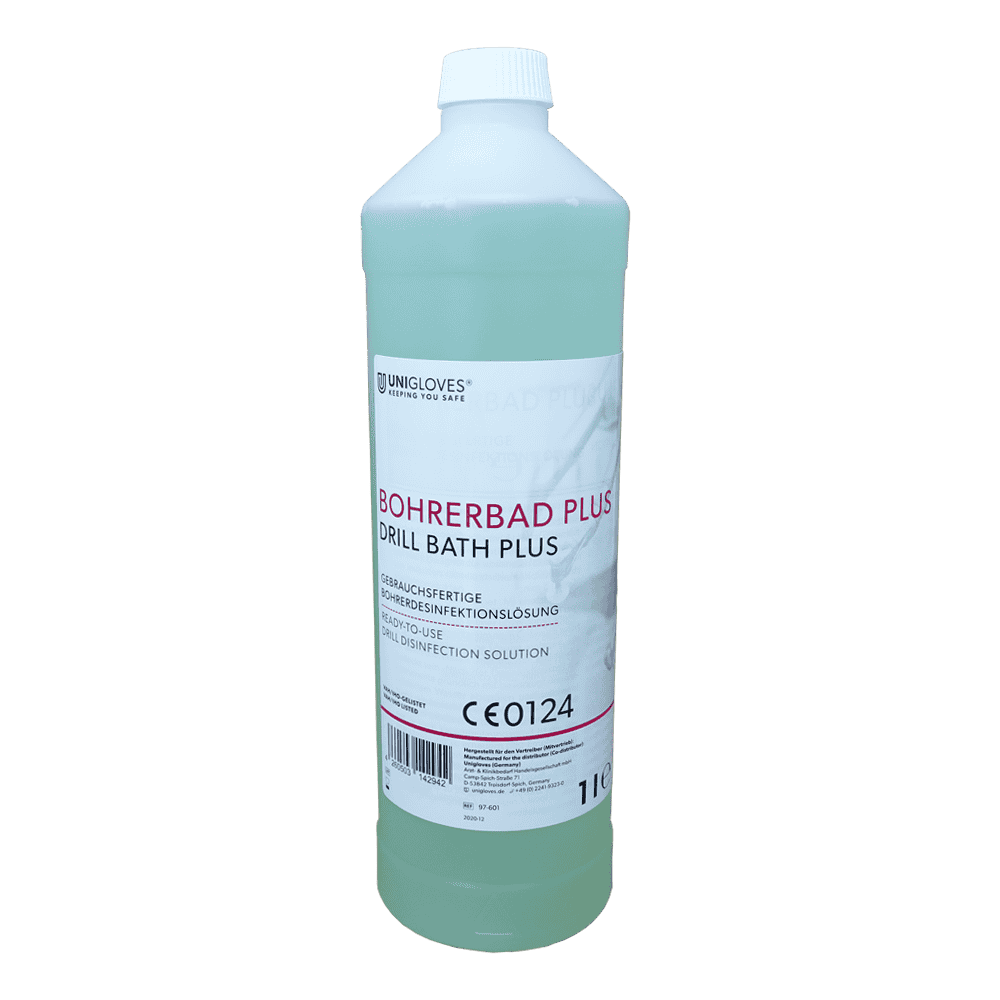 Bohrerbad PLUS immer unverdünnt anwenden! Das Instrumentarium nach Gebrauch sofort in die gebrauchsfertige Lösung einlegen, alle zu desinfizierenden Teile müssen vollständig bedeckt sein. Nach der Desinfektionszeit die Instrumente gründlich mit bevorzugt demineralisiertem Wasser abspülen und trocknen. Nicht mit anderen Desinfektionsmitteln oder Reinigern mischen, nicht für Aluminium geeignet. Je nach Verschmutzungsgrad ist die Gebrauchslösung zu erneuern (RKI Empfehlung: Mindestens arbeitstäglich). Die Gebrauchslösung kann über das Abwasser entsorgt werden. Es wird empfohlen, Schutzhandschuhe und Augenschutz zu tragen.